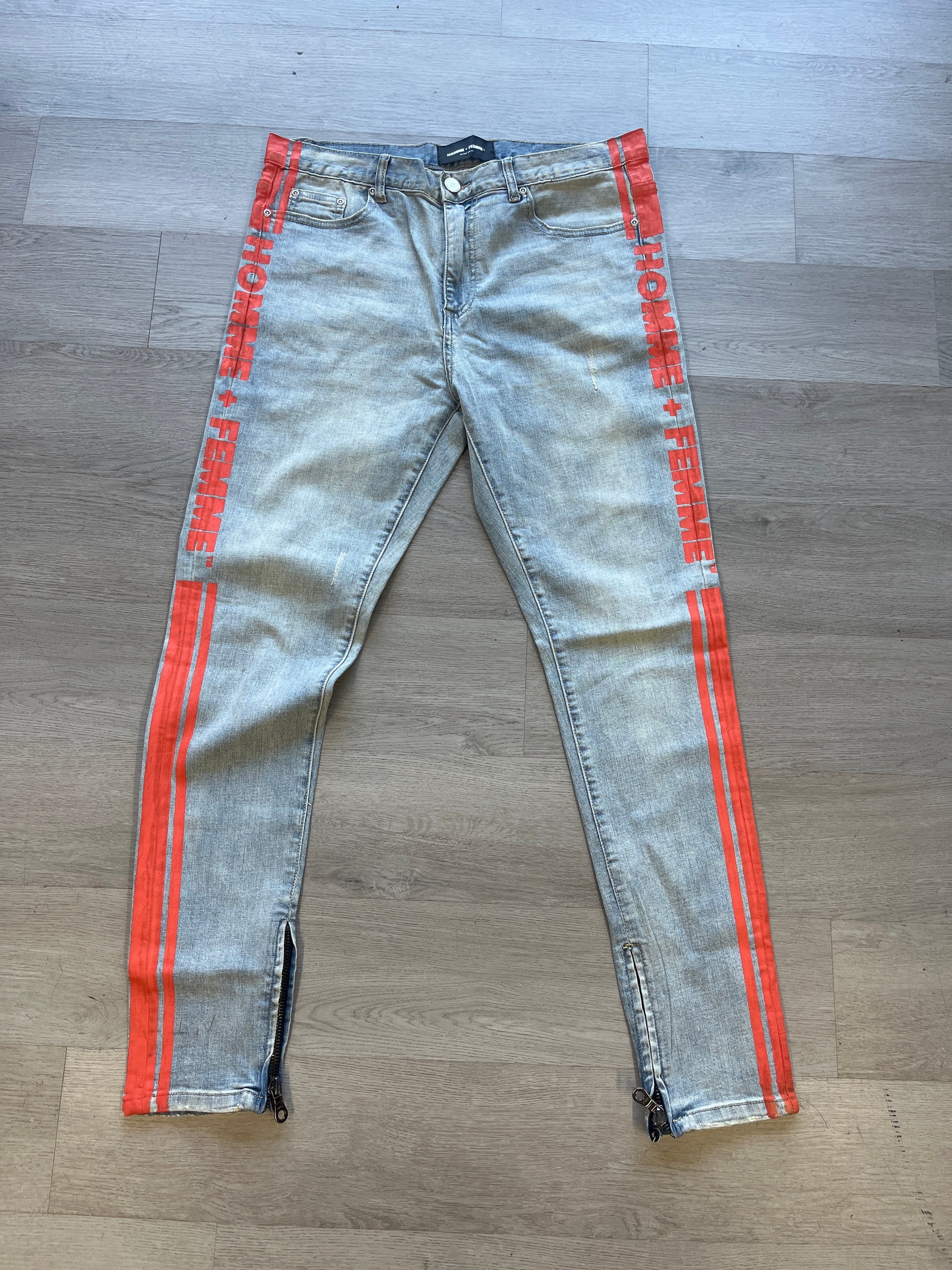 Homme + Femme Light Blue Jeans Orange Stripe